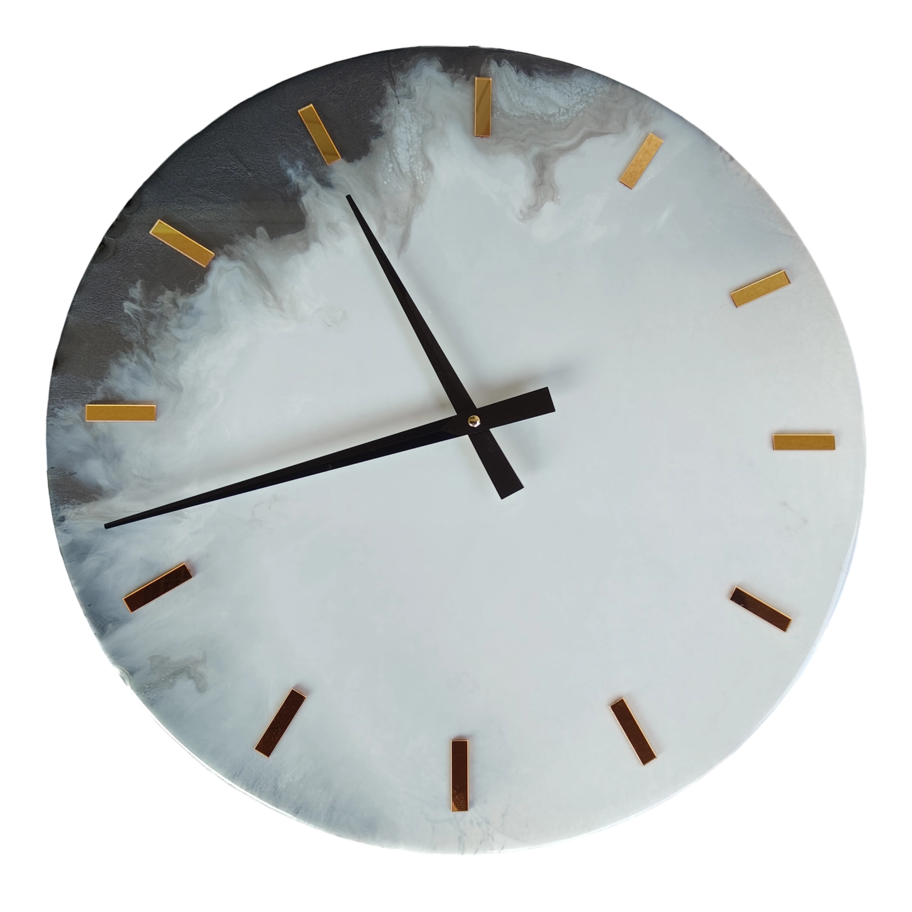 Duży Zegar z Żywicy Biały 50cm Złote Cyfry – hit w dekoracjach wnętrz 2025!