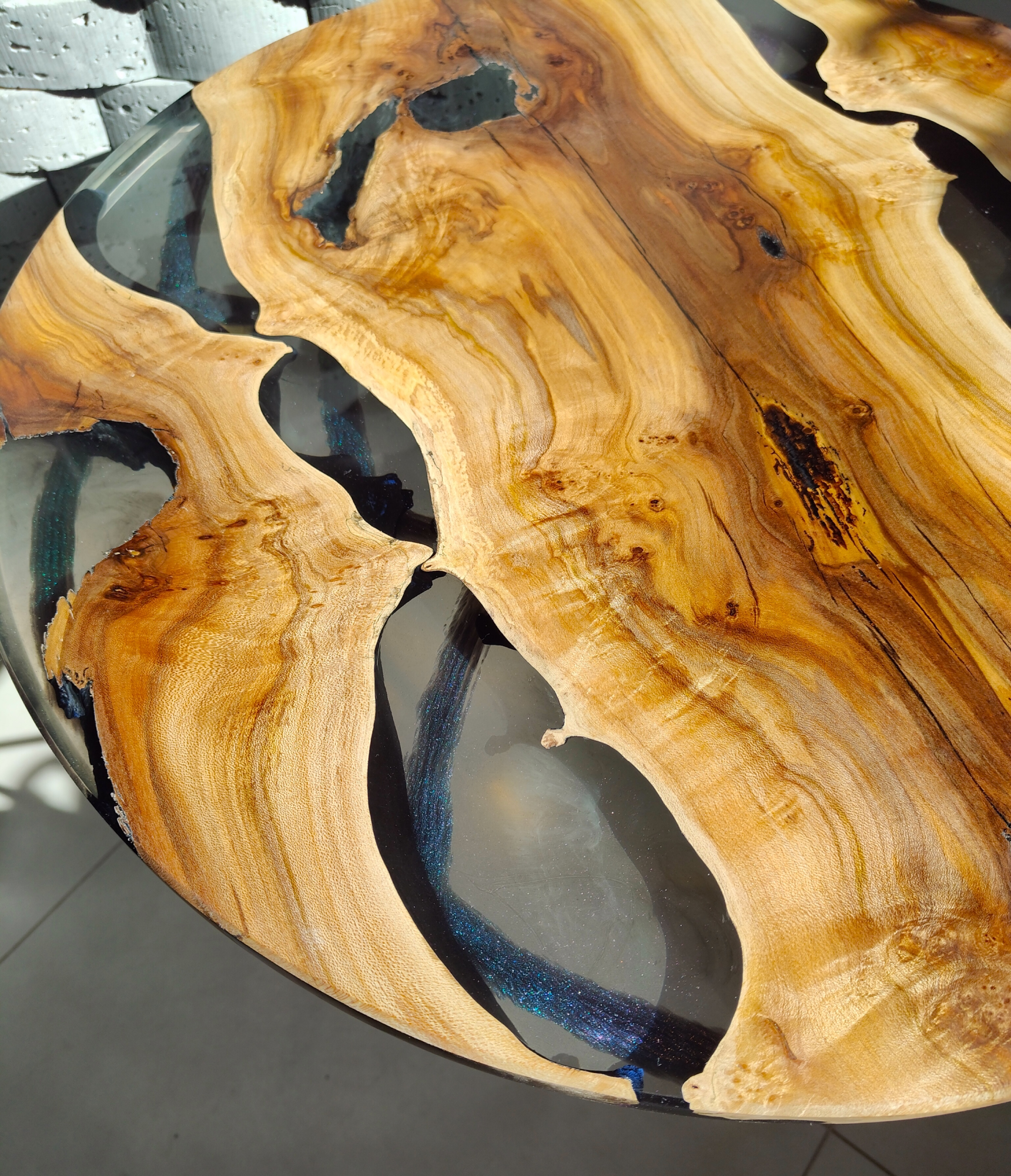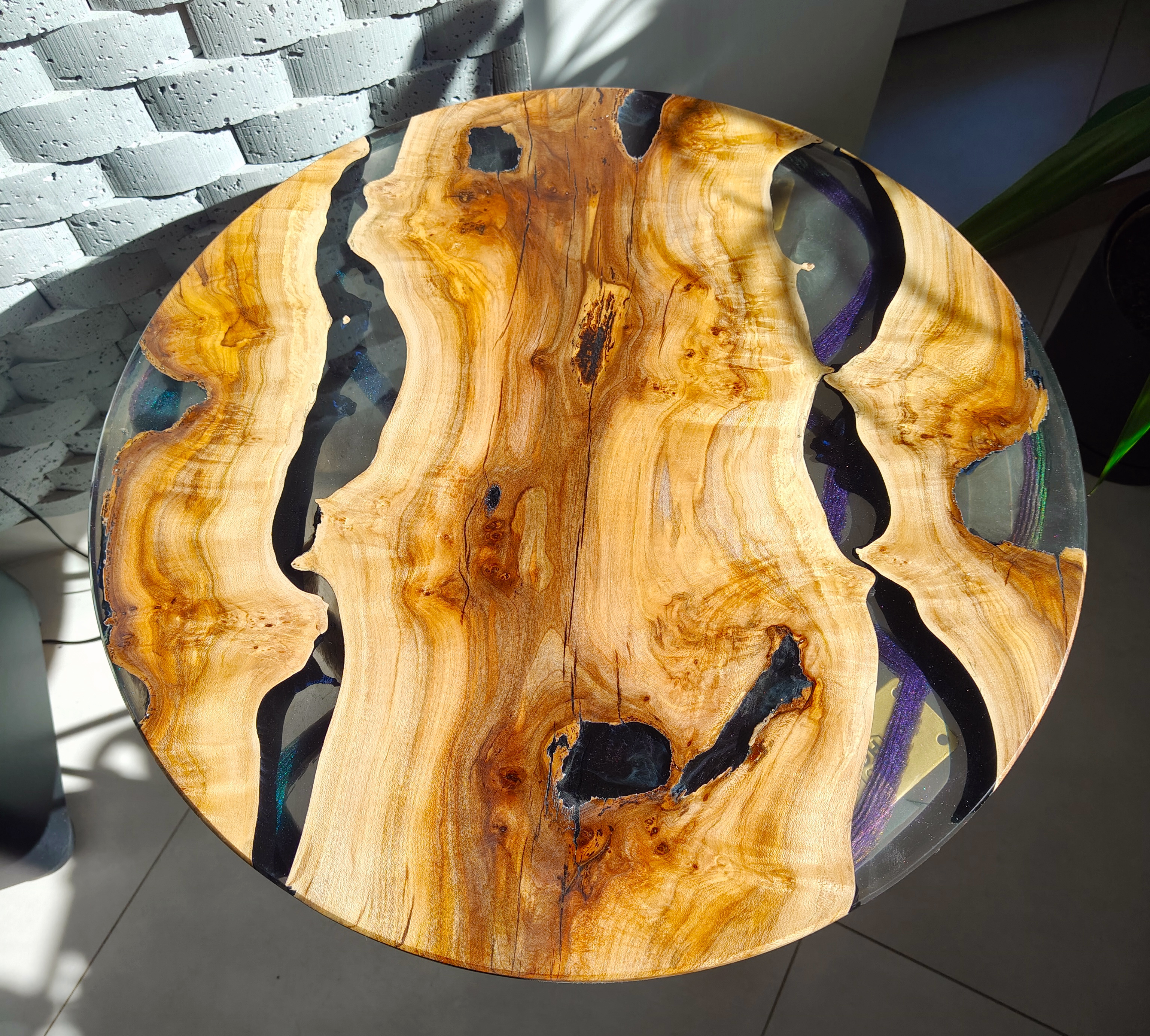 Harmonia natury i designu – surowość klonu kontrastuje z gładką, nowoczesną taflą żywicy.