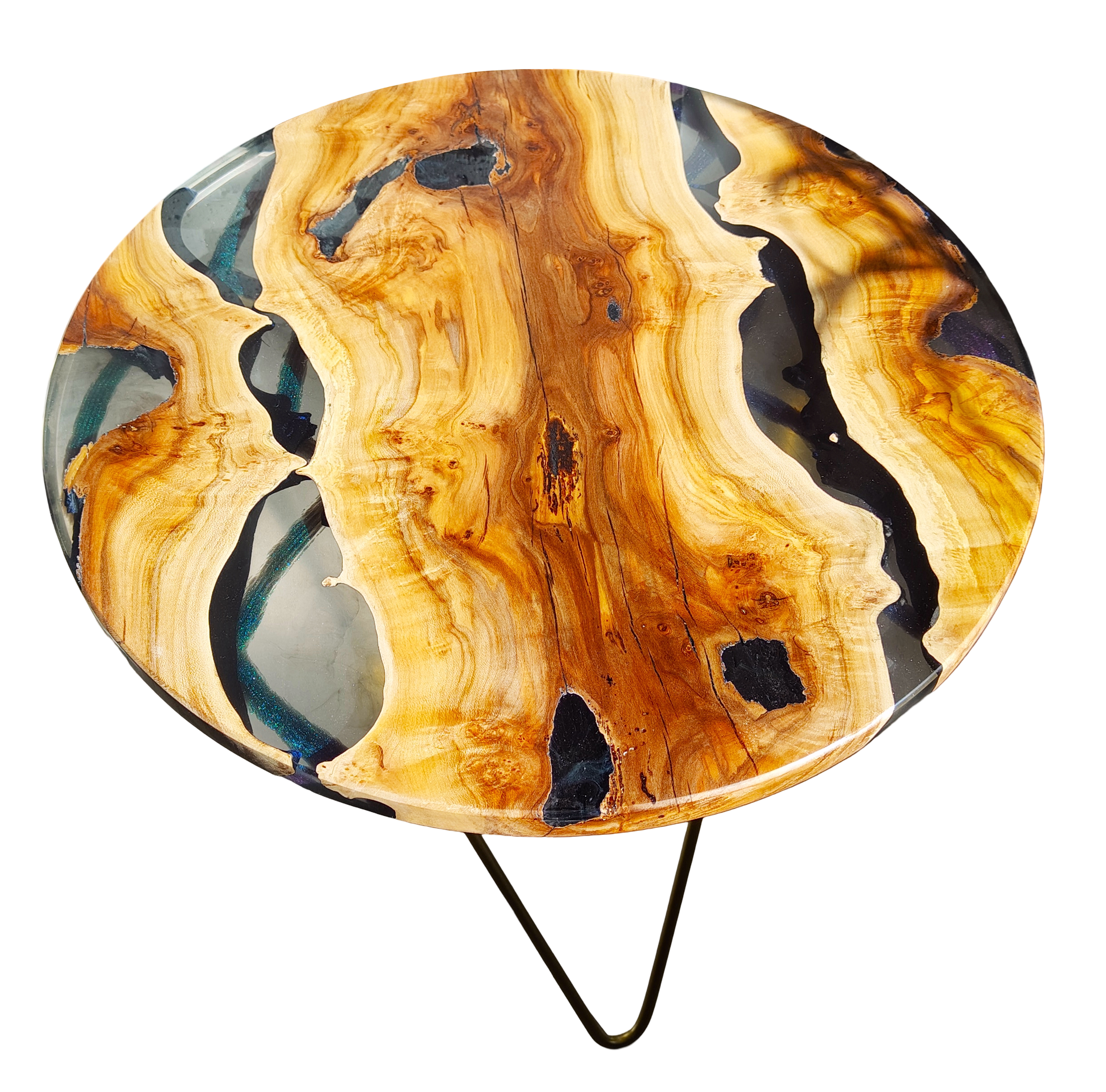 Wyobraź sobie poranek, kiedy promienie słońca delikatnie muskają powierzchnię stołu, a naturalne usłojenie klonu łączy się z lśniącą taflą żywicy, przypominającą spokojny nurt rzeki. Ten stolik to nie tylko mebel – to małe dzieło sztuki, które wnosi do wnętrza historię natury zamkniętą w nowoczesnej formie.
